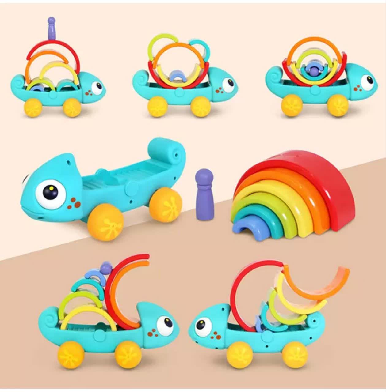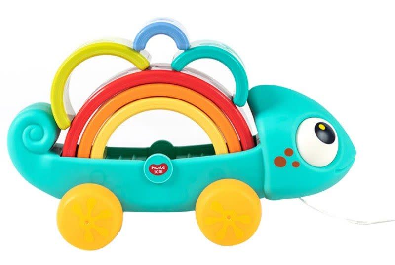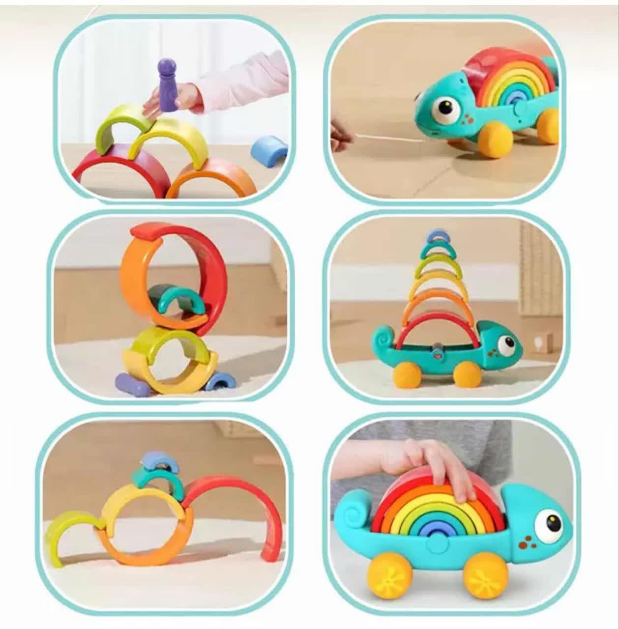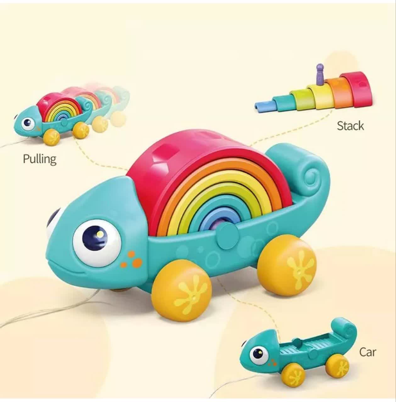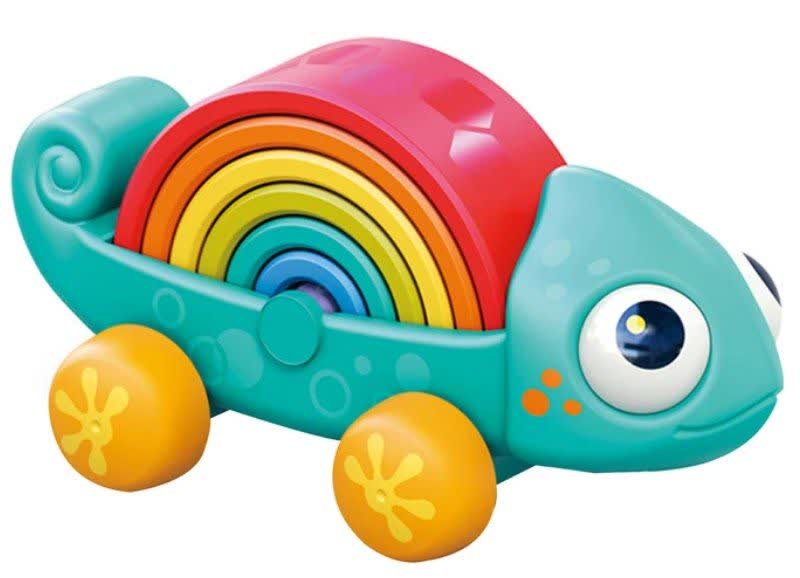 اسباب بازی آفتاب پرست رنگین کمانی هولی تویز (Hola Toys Rainbow Chameleon HE795700) یک اسباب بازی مونته سوری و کشیدنی آموزشی طراحی شده برای رشد مهارتهای کودک است. این محصول رنگارنگ و سرگرمکننده با الهام از شکل آفتابپرست، طراحی جذابی دارد که توجه کودکان را به خود جلب میکند و با قابلیت کشیدن و حرکت کردن باعث تشویق کودک به حرکت، بازی و کشف محیط میشود. قسمت بالایی این آفتابپرست دارای اسلاتهایی است که میتوان قطعات رنگی به شکل قوسهای رنگینکمان را در آن قرار داد، که به آموزش تشخیص رنگها، ترتیب اشیا، ترتیب اندازهها و هماهنگی دست و چشم کمک میکند. این اسباب بازی از پلاستیک ایمن و فاقد مواد مضر ساخته شده و مناسب کودکان ۱۸ ماه به بالا است، و ترکیبی از یادگیری فعال و بازی خلاقانه را برای آنها فراهم میآورد.