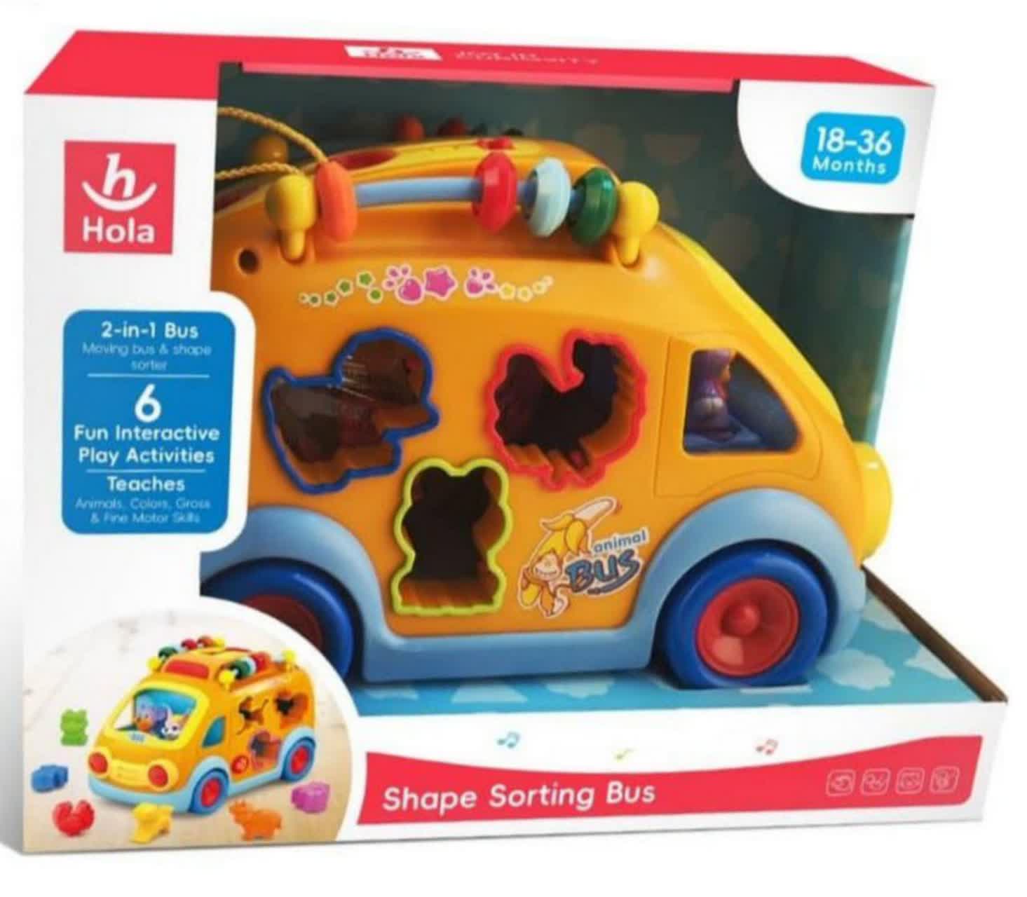 اتوبوس لگویی موزیکال هولا تویز (Hola Toys Shape Sorting Bus 988) یک اسباببازی آموزشی و تعاملی برای کودکان نوپا است که بازی با اشکال هندسی را با موسیقی، نور و حرکت ترکیب کرده است. این اتوبوس شامل ۶ قطعه شکل حیوانی است که کودک باید آنها را در جای مخصوصشان قرار دهد، که باعث تقویت مهارت تطبیق شکلها و رنگها میشود. اتوبوس میتواند به صورت دستی هل داده شود یا در حالت خودکار حرکت کند، با پخش آهنگ کودکانه، چراغ چشمکزن و دو سطح صدا. درب عقب آن با کلید باز میشود تا قطعات ذخیره شوند. این اسباببازی آموزشی برای کودکان بالای ۱۸ ماه طراحی شده و با باتری کار میکند. ترکیب بازی حرکتی، موسیقی و آموزش مهارتهای پایهای، این اتوبوس را به گزینهای عالی برای یادگیری سرگرمکننده تبدیل میکند.