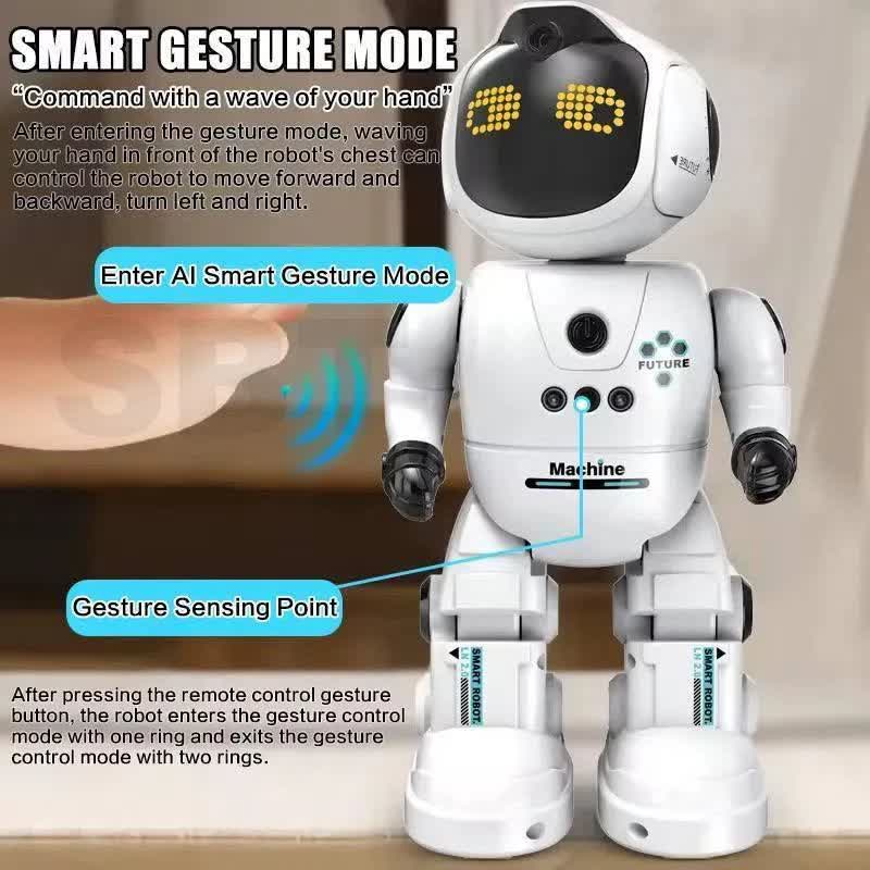 این ربات مجهز به سنسورهای اینفرارد (Infrared) است. با قرار دادن دست در مقابل قفسه سینه ربات، میتوانید بدون لمس فیزیکی و تنها با حرکت دست، آن را به جلو، عقب یا طرفین هدایت کنید. چشمهای LED ربات با تغییر حالت، احساسات مختلف را به نمایش میگذارند که باعث برقراری ارتباط عاطفی بیشتر کودک با اسباببازی میشود.