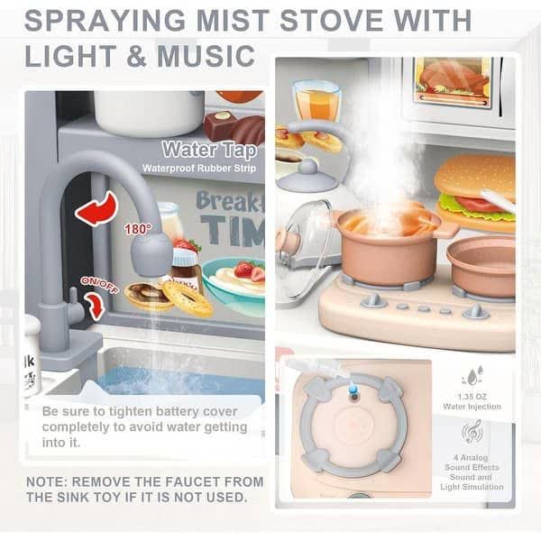 یکی از برجستهترین ویژگیهای ست آشپزخانه Dream Kitchen DIY 100T-3، وجود سینک ظرفشویی با قابلیت گردش آب است. کودک میتواند شیر آب را باز کرده و واقعاً ظروف خود را بشوید! همچنین، اجاق گاز این مجموعه دارای سنسورهایی است که با قرار دادن قابلمه روی آن، صدای سرخ شدن و پختوپز به همراه نورهای ملایم پخش میشود که هیجان بازی را دوچندان میکند.