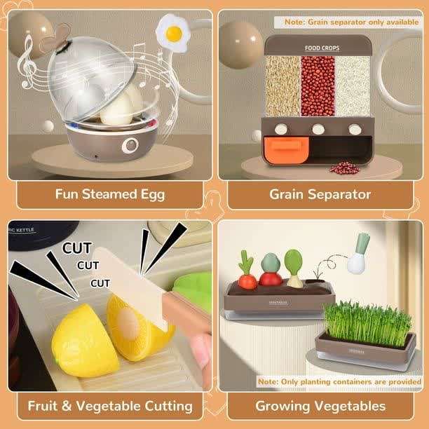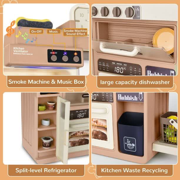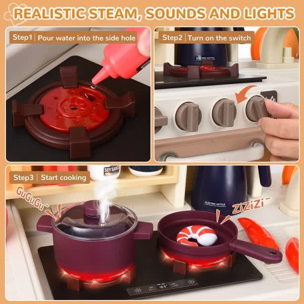 مهمترین ویژگی این محصول که آن را از مدلهای مشابه متمایز میکند، سیستم اسپری بخار سرد است. با ریختن مقدار کمی آب در محفظه مخصوص اجاق، هنگام روشن کردن شعله، بخار سردی از قابلمه خارج میشود که کاملاً بیخطر بوده اما جذابیت بازی را دوچندان میکند. همچنین افکتهای صوتی (صدای سرخ کردن و پختن) و نوری، اتمسفری واقعی ایجاد میکنند.