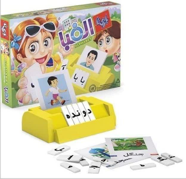 - یک صفحه پلاستیکی مخصوص بازی: این صفحه که بر روی جعبه تعبیه میشود، محل قرارگیری کارت تصویر و چیدن حروف است. طراحی آن به گونهای است که تمرکز کودک را بر روی کلمه مورد نظر حفظ کرده و بازی را منظمتر انجام میدهد.