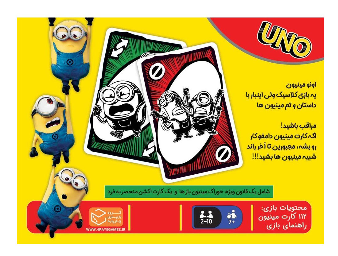اونو مینیون علاوه بر تم مینیونها، کارتهای جدید و طنزآمیزی مانند دامفو کار و موز جهنمی دارد که بازی را متفاوت میکند.