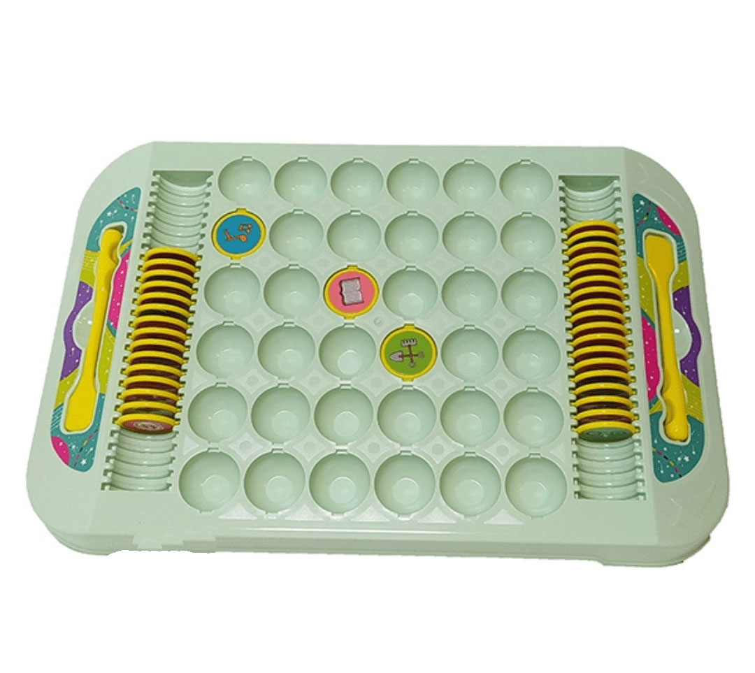 • مهره های بازی: تعدادی مهره دو به دو هم‌شکل (معمولاً بین ۲۴ تا ۴۸ عدد) با تصاویر  رنگارنگ، شاد و واضح. موضوع تصاویر می‌تواند حیوانات، میوه‌ها، اشکال  هندسی، وسایل نقلیه یا شخصیت‌های کارتونی باشد.