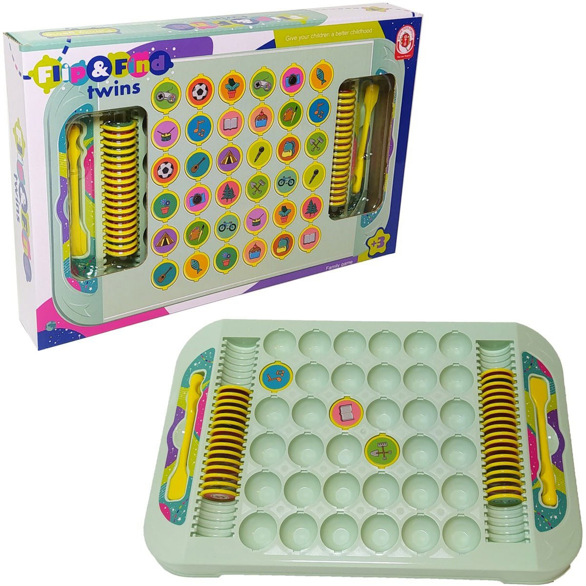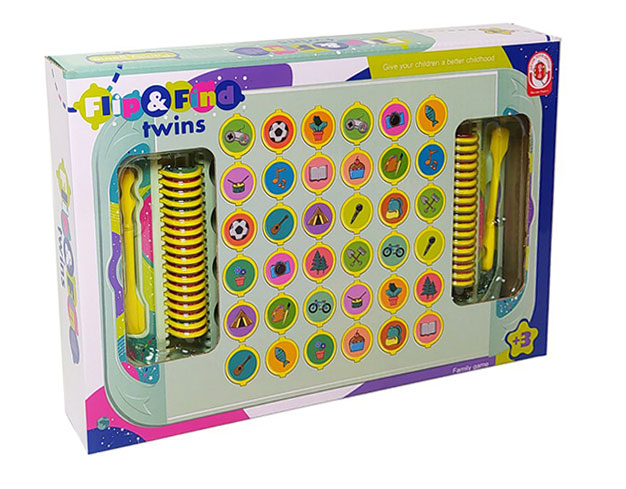 بازی فکری Flip & Find که با نام Twins نیز شناخته می‌شود، یک بازی کلاسیک و محبوب برای تقویت حافظه و تمرکز تمام  اعضای خانواده است. در این بازی، بازیکنان باید در نوبت خود مهره ها  را برگردانند و تصاویر مشابه را به خاطر بسپارند و با پیدا کردن جفت‌ها،  امتیاز کسب کنند. این بازی با باکیفیت و چاپ عالی، برای رده  سنی 3 سال به بالا طراحی شده و ساعت‌ها سرگرمی سالم و آموزشی را فراهم  می‌کند. Flip & Find نه تنها یک بازی هیجان‌انگیز گروهی است، بلکه یک ابزار عالی برای پرورش مهارت‌های شناختی کودکان نیز محسوب می‌شود.