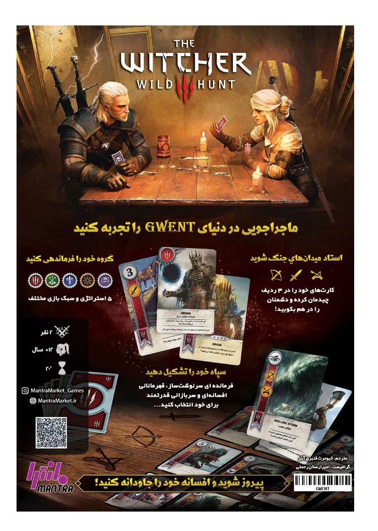 بازی کارتی «گوئنت – Gwent: The Witcher Card Game» نسخه ایرانی، تجربهای ویژه از دنیای فانتزی و استراتژیک ویچر را به میز بازی شما میآورد. این بازی مبتنی بر مینیگیمی است که برای اولین بار در بازی ویدئویی The Witcher 3: Wild Hunt معرفی شده بود. Wikipedia+2Wikipedia+2 نسخه ایرانی این بازی با تولید گروه مانترا و با تمرکز بر کیفیت ساخت و ارائه قوانین کامل، فرصتی فراهم کرده تا علاقهمندان به بازیهای کارتی و طرفداران دنیای ویچر، در فضای فیزیکی به رقابت بپردازند.