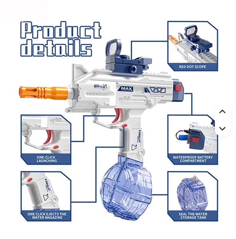 تفنگ آبپاش برقی یوزی UZi Electric Water Gun یکی از بهترین اسباببازیهای آبی برای فصل تابستان است که با ترکیب طراحی مدرن، قدرت بالا و ظرفیت مناسب، سرگرمی بیپایانی را برای کودکان و نوجوانان به همراه دارد.