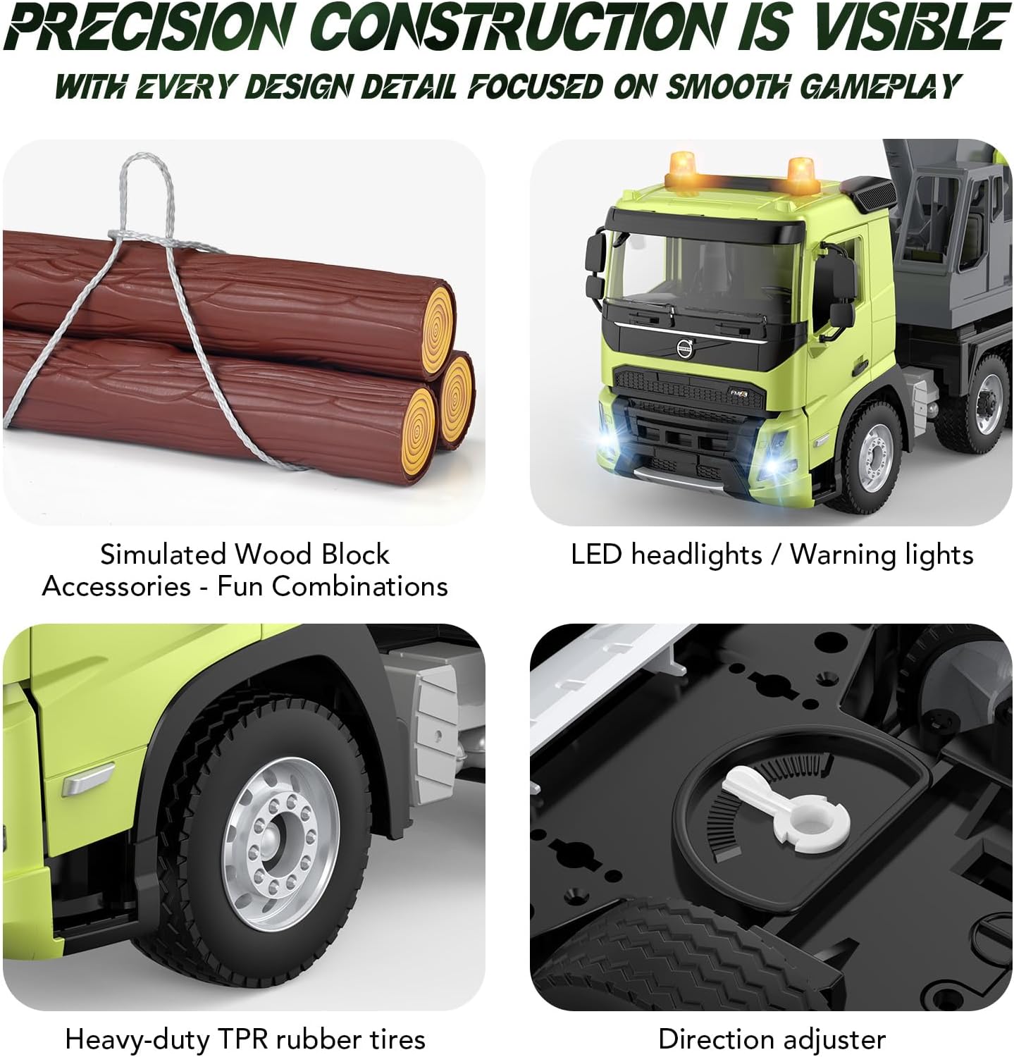 جرثقیل ساختمانی کنترلی شارژی ولوو، دارای چهار چرخ محرک با موتورهای قدرتمند است که میتواند چوبها را بلند کرده و حرکت کند. از این رو برای بازیهای نقشآفرینی و برای بازی در فضای باز ایدهآل است.