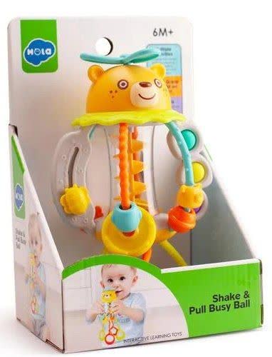 جغجغه آویزی طرح خرس هولی تویز (Hola Toys Shake and Pull Busy Ball HE7916) این محصول با طراحی منحصر به فرد خود، علاوه بر سرگرم کردن کودک، به رشد و تقویت مهارتهای مختلف او نیز کمک میکند. این جغجغه به گونهای طراحی شده که به راحتی بر روی تخت، کریر، کالسکه و یا هر جای دیگری قابل آویزان کردن است. با این قابلیت، کودک میتواند در هر مکان و موقعیتی با این جغجغه سرگرم شود. بر روی این جغجغه، عروسکهای آویزی زیبایی با رنگها و طرحهای متنوع وجود دارد. تکان دادن جغجغه باعث حرکت این عروسکها شده و توجه و تمرکز چشمی کودک را تقویت میکند.