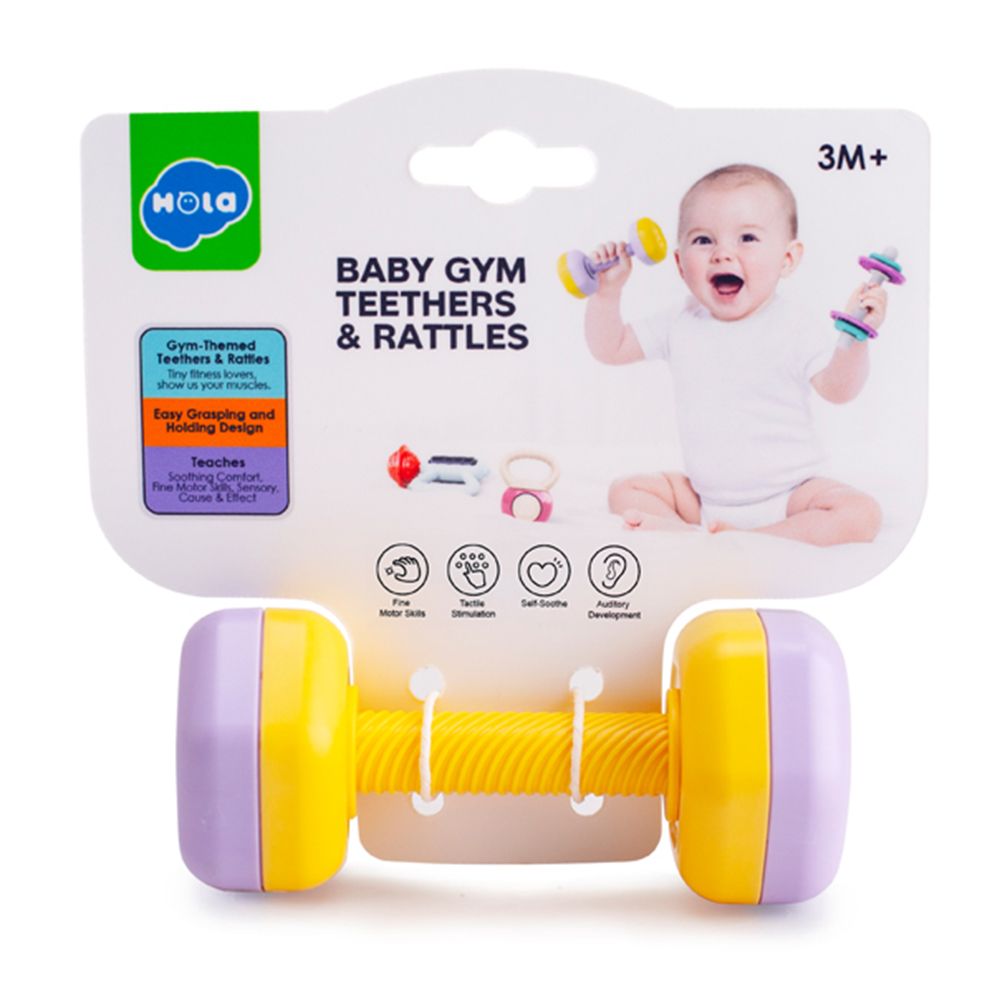 جغجغه طرح دمبل زرد کودک هولا تویز Baby Gym Teether and Rattle HE7900B