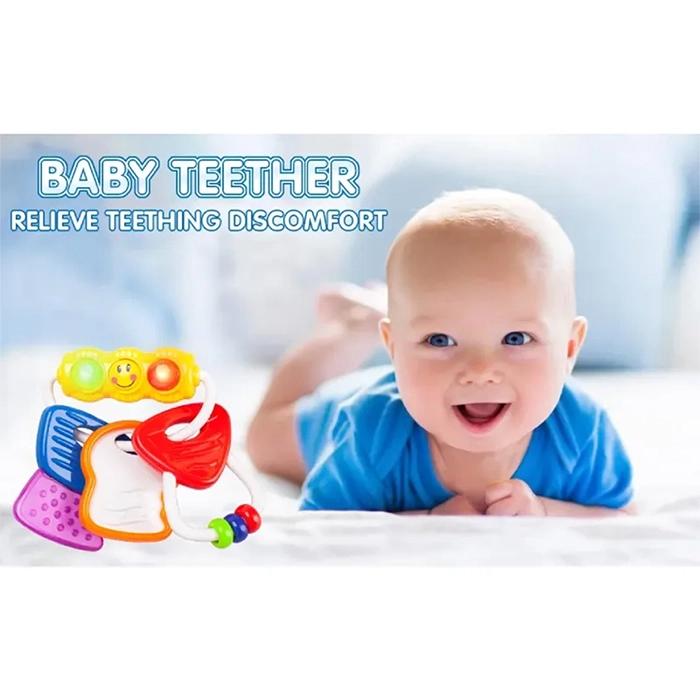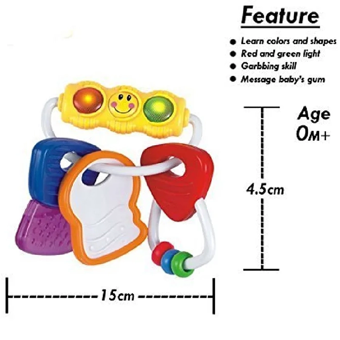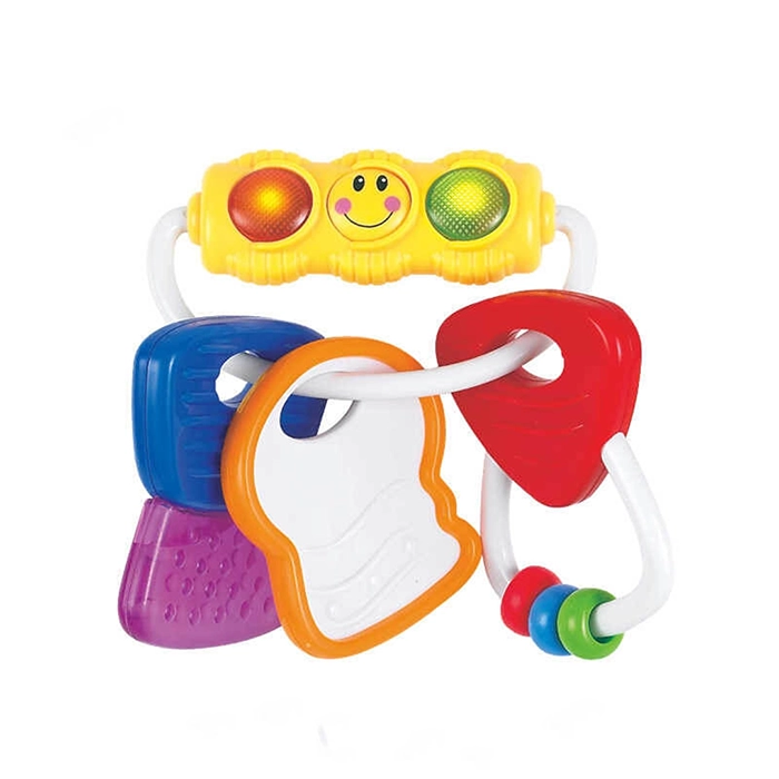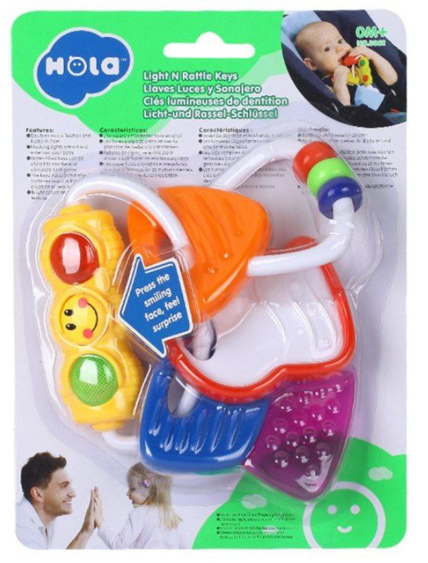جغجغه و دندانگیر چراغدار هولی تویز (Hola Toys Light N Rattle Keys 306E) این محصول با طراحی منحصر به فرد خود، علاوه بر سرگرم کردن کودک، به رشد و تقویت مهارتهای مختلف او نیز کمک میکند. جغجغه هالی تویز با رنگهای شاد و متنوع، توجه کودک را جلب کرده و حس بینایی او را تحریک میکند. جغجغه و دندانگیر چراغدار هولا تویز یکی از اسباببازیهای کاملاً ایمن، خلاقانه و جذاب برای نوزادان است که با طراحی کلیدهای رنگی، نور ملایم و صدای جغجغهای، توجه کودک را جلب کرده و به تحریک حواس پنجگانه کمک میکند. این محصول مناسب دوران دنداندرآوردن بوده و با مواد سیلیکونی نرم و ایمن، احساس آرامش بیشتری به نوزاد میبخشد.