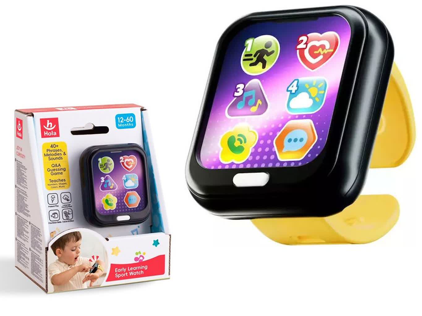 ساعت مچی موزیکال هولی تویز (Hola Toys Early Learning Sport Watch HE8967) یک اسباببازی آموزشی بسیار جذاب برای کودکان نوپا است که ترکیبی از زمانسنجی، موسیقی و یادگیری را در خود دارد. این ساعت تعاملی بیش از ۴۰ صدا، ملودی و عبارت آموزشی پخش میکند که شامل یادگیری اعداد، اشکال، رنگها و مفهوم زمان است. دکمههای رنگی بزرگ و طراحی سبک آن برای دستان کودک مناسباند. این ساعت برای رده سنی ۱۲ تا ۶۰ ماه (۱ تا ۵ سال) توصیه شده است. با داشتن یک ساعت که موسیقی و یادگیری را با هم ترکیب میکند، کودک نه تنها سرگرم میشود بلکه مهارتهای شناختیاش نیز تقویت میشود.