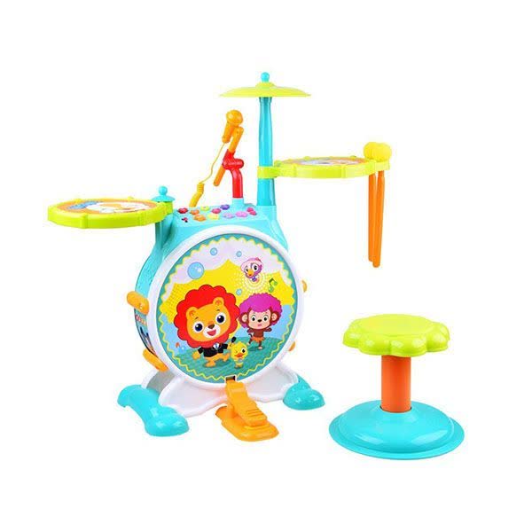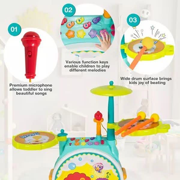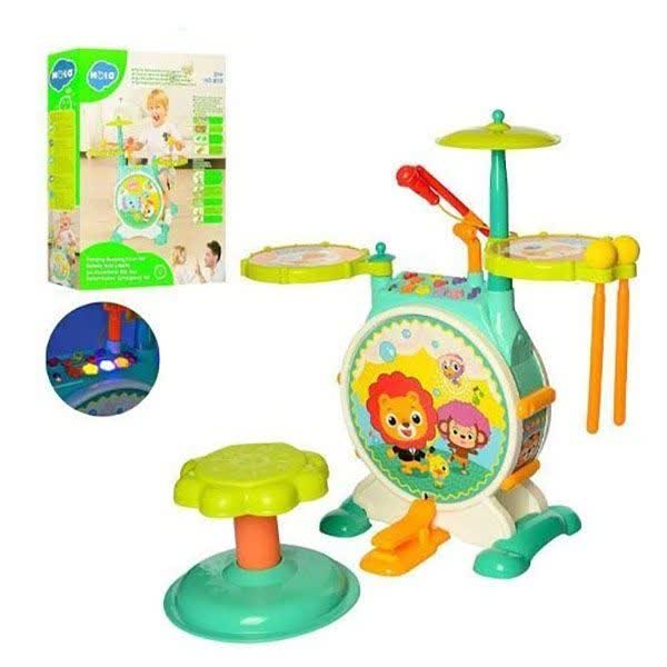 اسباب بازی ست درام جاز هولی تویز (Hola Toys Banging Bopping Drum Set 3130) یک ایستگاه موسیقی کامل و جذاب برای کودکان هنرمند است. این محصول، فراتر از یک اسباببازی ساده بوده و به عنوان یک ابزار آموزشی برای آشنایی با ریتم و موسیقی طراحی شده است. این ست شامل یک درام بزرگ (بدنه اصلی)، دو درام کوچک در طرفین، سنج، پدال پا، میکروفون و یک صندلی مخصوص است که تجربهای واقعی از نوازندگی را به کودک هدیه میدهد. نورپردازیهای رنگی و افکتهای صوتی متنوع در کنار قابلیت پخش آهنگهای پیشفرض، این مجموعه را به محبوبترین وسیله برای تقویت اعتماد به نفس و مهارتهای حرکتی کودکان تبدیل کرده است.