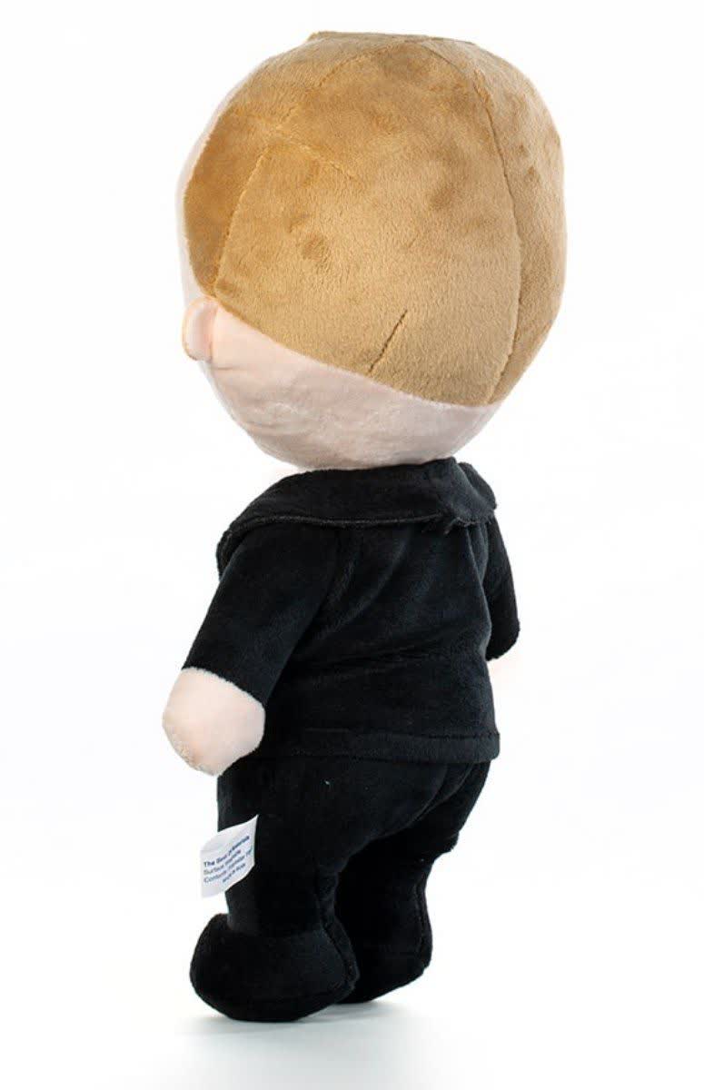 در طراحی عروسک پولیشی بچه رئیس مدل AF100321، ما شاهد بازسازی دقیق چهره "تئودور" هستیم. فرم ابروهای مایل و لبخند ملایمی که نشان از ذکاوت او دارد، با گلدوزیهای ظریف اجرا شده است. کتوشلوار مشکی یکپارچه و یقه پیراهن سفید او از جنس پارچهای نرم و مخملی است که حس لامسه خوشایندی را منتقل میکند. این عروسک بدون قطعات سخت و تیز طراحی شده تا برای کودکان در سنین پایین نیز خطری نداشته باشد.