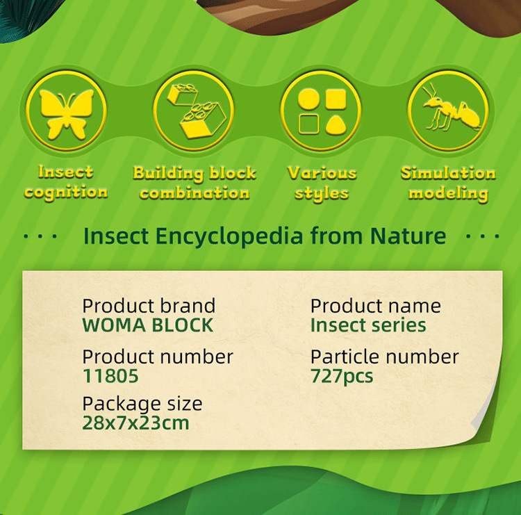 لگو دنیای حشرات Insect World از برند Woma یک مجموعه ساختنی منحصربهفرد برای کودکان و نوجوانان علاقهمند به طبیعت، زیستشناسی و ساختنیهای خلاقانه است. این محصول با ۷۲۷ قطعه رنگارنگ و مقاوم از جنس ABS، امکان ساخت ۴ مدل دقیق از حشرات مختلف را فراهم میکند که هرکدام با الهام از گونههای واقعی طراحی شدهاند.