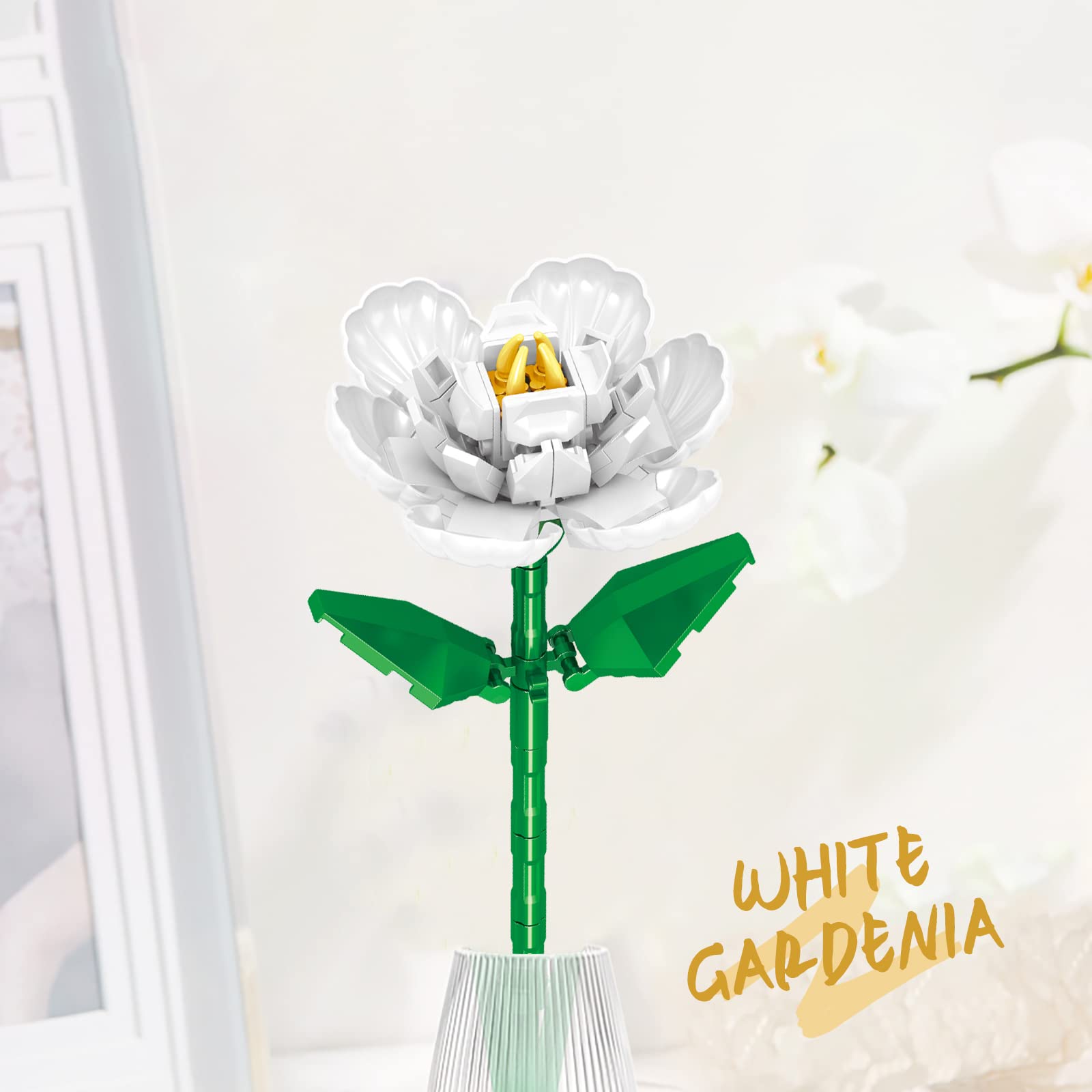 این محصول شامل قطعات لازم برای ساخت یک شاخه گل گاردنیای سفید با گلدان است که در مجموع کمتر از 100 قطعه دارد.