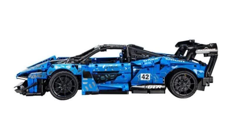 طراحی لگو ماشین جی تی آر شوالیه تاریکی با الهام از خودروهای مسابقهای GT3 انجام شده است. بدنه کشیده، ورودیهای هوای بزرگ در قسمت جلو و کنارهها، و دیفیوزر عقب همگی نشاندهنده دقت طراحان در شبیهسازی آیرودینامیک هستند. رنگ مشکی یکدست بدنه که با قطعات قرمز و خاکستری در بخشهای داخلی تضاد ایجاد کرده، جذابیتی دوچندان به آن بخشیده است. دربهای خودرو به صورت پروانهای باز میشوند و نمای داخلی شامل صندلیهای مسابقهای و داشبورد پرجزئیات را نمایان میکنند.