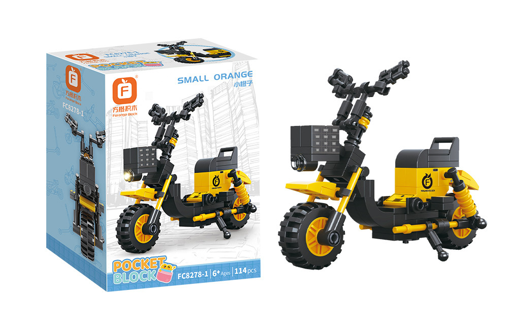 مدل لگو موتورسیکلت فانتزی Forange Block Vehicle Small Orange FC8278-1 یک لگو موتورسیکلت فانتزی است که با ۱۱۴ قطعه مشکی و زرد طراحی شده است.این لگو برای کودکان و بزرگسالان علاقهمند به وسایل نقلیه و لگو مناسب است و ترکیبی از سرگرمی و دکور را ارائه میدهد. طراحی جزئیات فرمان، چرخها و بدنه موتورسیکلت، امکان مونتاژ آسان و حس واقعی بودن را به کاربر میدهد.پس از مونتاژ، این مدل میتواند بهعنوان اسباببازی حرکتی، هدیه کلکسیونی یا دکور فانتزی روی میز یا ویترین استفاده شود.