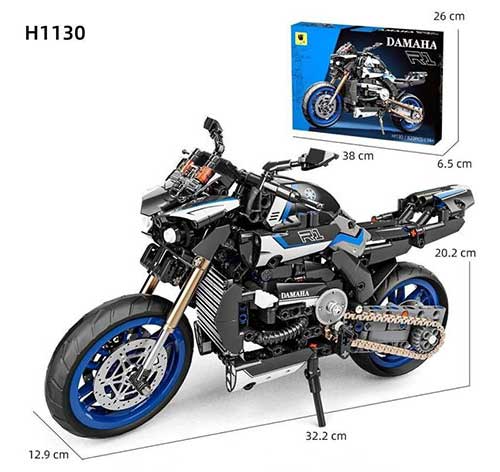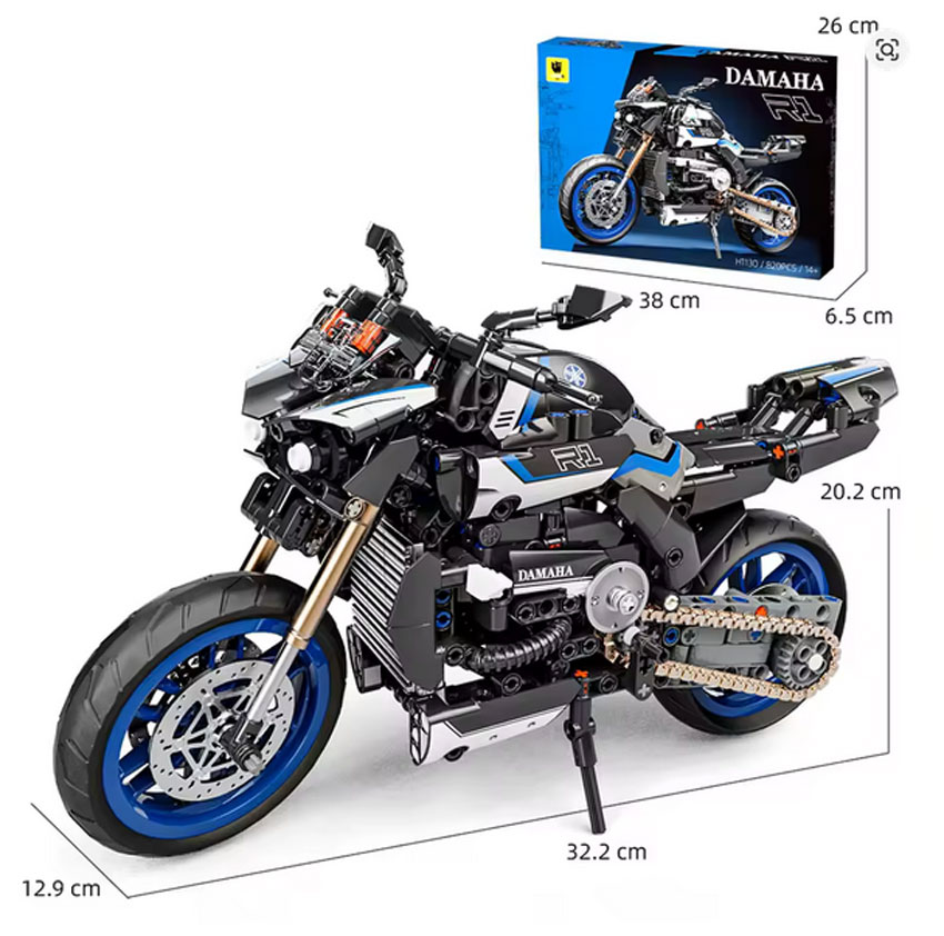 لگو موتور سیکلت داماها LEIMA Damaha R1 Motorcycle H1130 یکی از مدلهای برجسته در میان مجموعههای ساختنی موتورسیکلت است. این مدل با 820 قطعه باکیفیت، از ساختار واقعی موتورهای اسپرت R1 الهام گرفته و توانسته ظاهر مدرن، خطوط تیز و هویت موتورهای مسابقهای را به زیبایی بازآفرینی کند. جزئیاتی همچون رینگها، چراغ جلو، تعلیق، زنجیر و بدنه آیرودینامیک با دقت بالا طراحی شدهاند تا نتیجه نهایی شبیه یک ماکت حرفهای باشد.