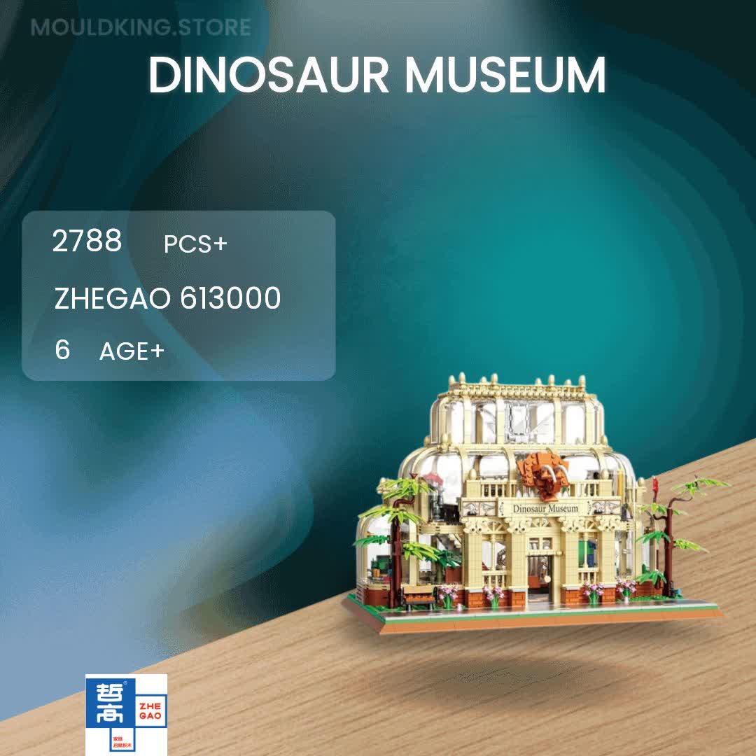 لگو موزه دایناسور Dinosaur Museum 613000 یکی از جذابترین و پرجزئیاتترین ستهای سری معماری است که توسط برند Zhe Gao طراحی شده است. این مجموعه با دارا بودن ۲۷۸۸ قطعه از نوع مینی (Mini Blocks)، تجربهای لذتبخش و چالشبرانگیز از ساخت یک بنای کلاسیک و علمی را ارائه میدهد. در طراحی این محصول، تمامی استانداردهای یک موزه واقعی رعایت شده است. ابعاد نهایی این سازه پس از ساخت، حدود ۳۴.۶ سانتیمتر طول و ۲۱.۶ سانتیمتر ارتفاع است که آن را به یک المان دکوری باشکوه تبدیل میکند. در نمای جلویی این موزه، یک تندیس بزرگ از اسکلت دایناسور خودنمایی میکند که نماد اصلی مجموعه است.
