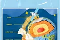 - آموزش ساختار زمین: بخشی از کره به صورت مقطع طراحی شده و لایههای مختلف زمین شامل پوسته (Crust)، گوشته (Mantle)، هسته خارجی (Outer Core) و هسته داخلی (Inner Core) را نمایش میدهد.