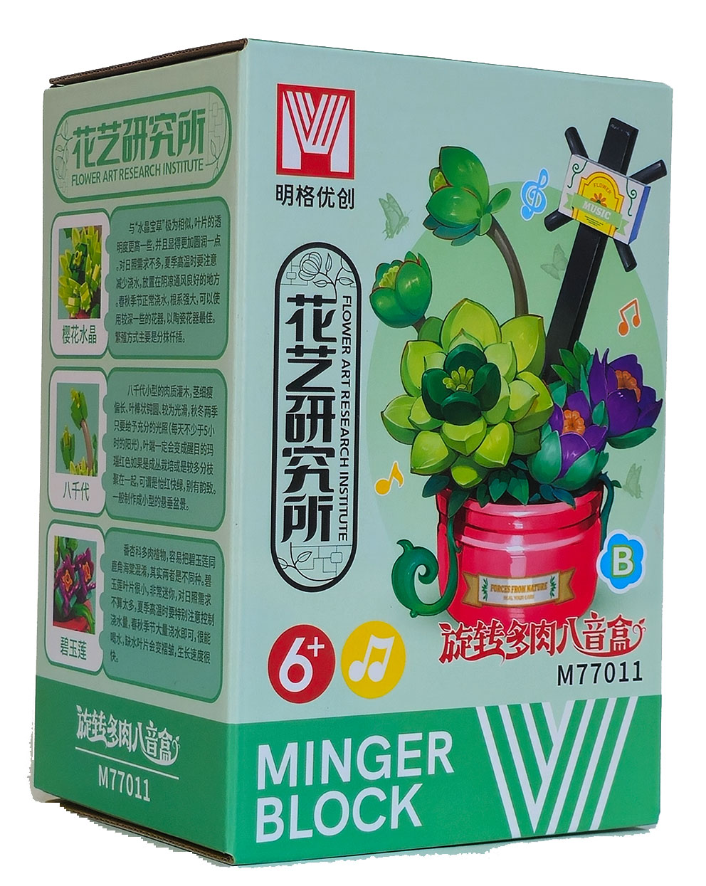 مدل B با گلهای سبز روشن و برگهای ضخیم یادآور ساکولنتهای واقعی است. ترکیب رنگهای زنده و جذاب همراه با پایه قرمز، جلوهای مدرن و شاد به فضا میدهد. صدای ملایم موزیک در حین چرخش گلها، حس طراوت و زندگی را به محیط شما منتقل میکند. مناسب برای دکور میز کار، اتاق خواب و هدیه به علاقهمندان لگوهای گیاهی.