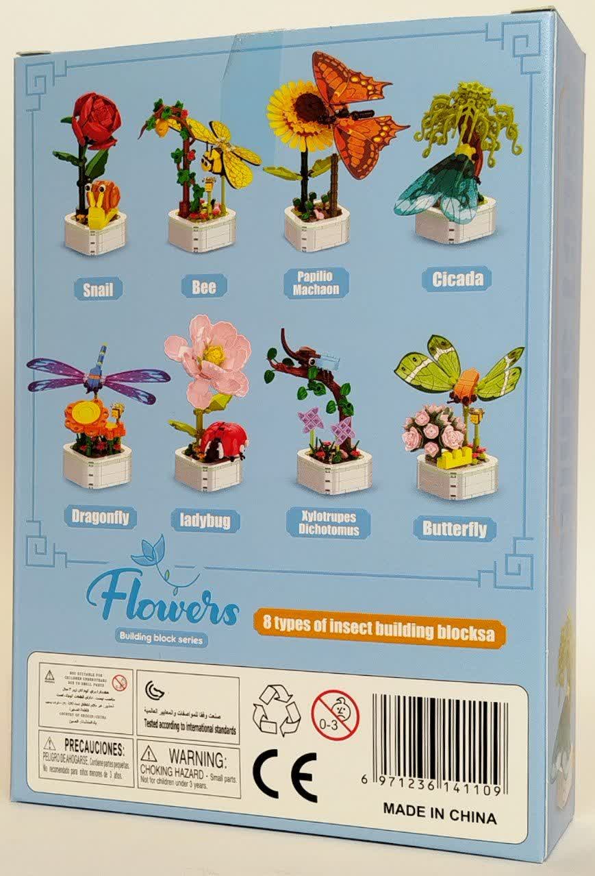 درون جعبه این محصول قطعات لازم برای ساخت گلدان، گلها و جیرجیرک، به همراه راهنمای تصویری مرحلهبهمرحله قرار دارد. همه قطعات به راحتی قابل اتصال و جداسازی هستند.