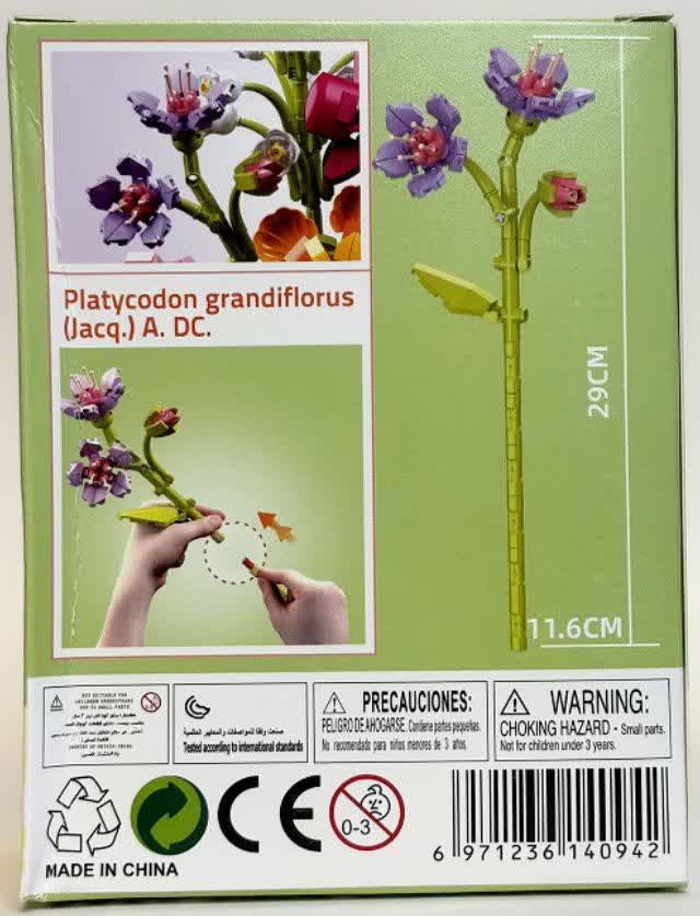 لگو گل پلاتیکدون گراندیفلوروس Platycodon Grandiflorus (Jacq.) A. DC. Flower 087G7 محصولی جذاب از برند Zuanma است که با الهام از گل زنگولهای چینی (Platycodon grandiflorus) طراحی شده است. این لگو، مانند دیگر محصولات سری گلهای بلوکی این برند، به کودکان و بزرگسالان این امکان را میدهد تا با قطعات پلاستیکی ABS بههمپیوسته، یک مدل گل سهبعدی زیبا بسازند.