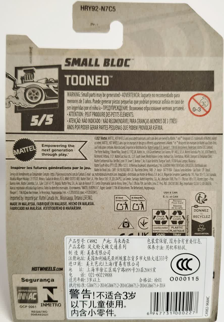 سری Tooned در هات ویلز طرفداران بسیار خاصی دارد. در این سری، تناسبات واقعی خودرو به هم میریزد تا ظاهری کاریکاتوری و جذاب پیدا کند. مدل Small Bloc که نامش بازی با واژه "Small Block" (نوعی موتور معروف V8 جنرال موتورز) است، دقیقاً همین فلسفه را دنبال میکند. این ماشین انگار یک موتور غولپیکر است که چهار چرخ به آن وصل شده است!