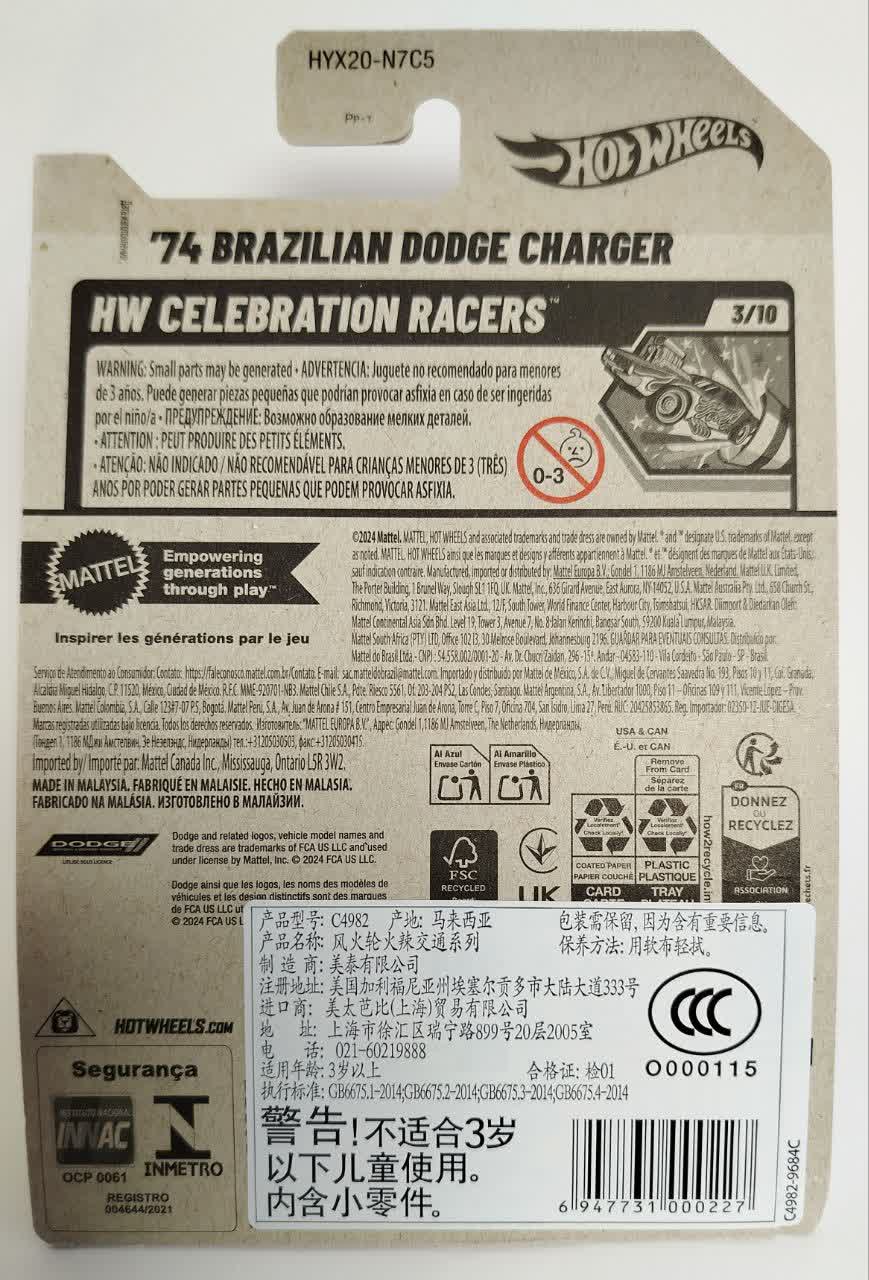 Hot Wheels 74 Brazilian Dodge Charger HW Celebration Racers 3/10 76/250