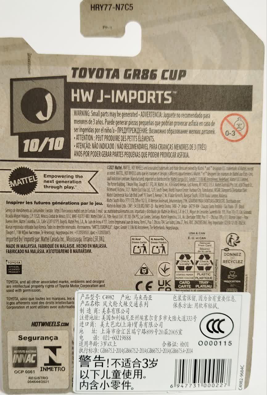 این مدل شماره ۱۰ از ۱۰ در سری HW J-Imports است. این سری به خودروهای وارداتی ژاپنی اختصاص دارد که فرهنگ تیونینگ و دریفت را در جهان گسترش دادند. قرار گرفتن تویوتا GR86 Cup به عنوان آخرین مدل این سری، نشاندهنده اهمیت این خودروی مدرن در کنار افسانههای کلاسیک ژاپنی است.