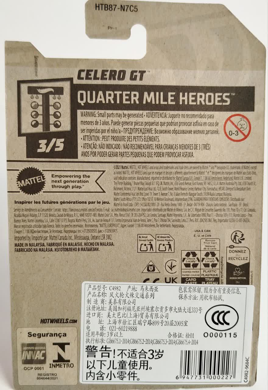 این مدل شماره ۳ از ۵ در سری Quarter Mile Heroes است. این سری به خودروهایی اختصاص دارد که در مسافت یکچهارم مایل (۴۰۰ متر) سریعترین زمان را ثبت میکنند. لوگوی این سری که شبیه به چراغهای شروع مسابقات درگ است، در گوشه کارت دیده میشود. Celero GT با استایل مدرن خود، نماینده نسل جدید درگسترها در این مجموعه است.