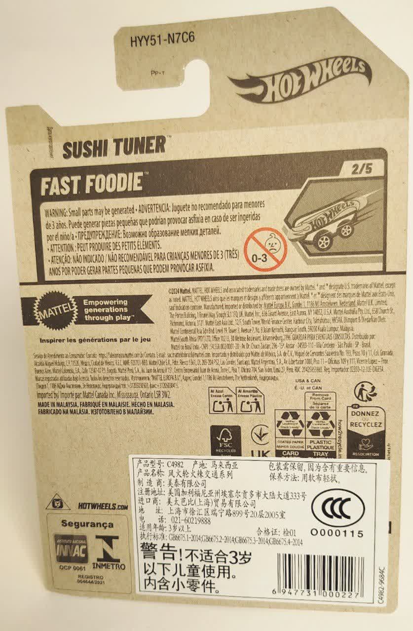 هات ویلز فقط درباره ماشینهای مسابقهای واقعی نیست؛ گاهی اوقات طراحان این شرکت تصمیم میگیرند با غذا بازی کنند! Sushi Tuner نتیجه یکی از همین بازیهاست. این ماشین که توسط طراح معروف Ryu Asada (که عاشق غذا بود) خلق شده، اکنون در سری Fast Foodie سال ۲۰۲۵ بازگشته است تا اشتهای کلکسیونرها را تحریک کند.