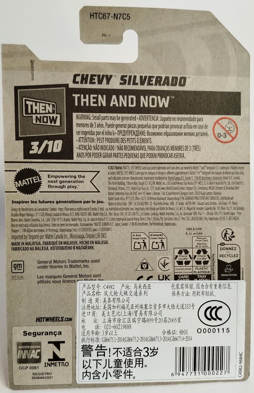 این مدل شماره ۳ از ۱۰ در سری Then and Now است. این سری همیشه دو خودرو از یک برند (یکی قدیمی و یکی جدید) را در کنار هم قرار میدهد. شورلت سیلورادو در اینجا نقش "Now" (زمان حال) را بازی میکند و احتمالاً با یک وانت شورلت کلاسیک (مانند مدلهای C10 یا Silverado قدیمی) جفت میشود. لوگوی این سری در گوشه کارت با فونت خاص دیده میشود.