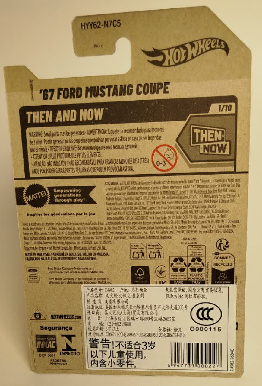 سری "Then and Now" یکی از جذابترین زیرمجموعههای هات ویلز است. ایده این سری، جفت کردن یک مدل کلاسیک (Then) با نسخه مدرن همان ماشین (Now) است. این فورد موستانگ کوپه ۶۷، نقش "Then" یا همان مدل کلاسیک را بازی میکند. کلکسیونرها معمولاً سعی میکنند هر دو مدل قدیم و جدید را پیدا کنند تا ست خود را تکمیل نمایند، که این موضوع ارزش خرید این محصول را افزایش میدهد.