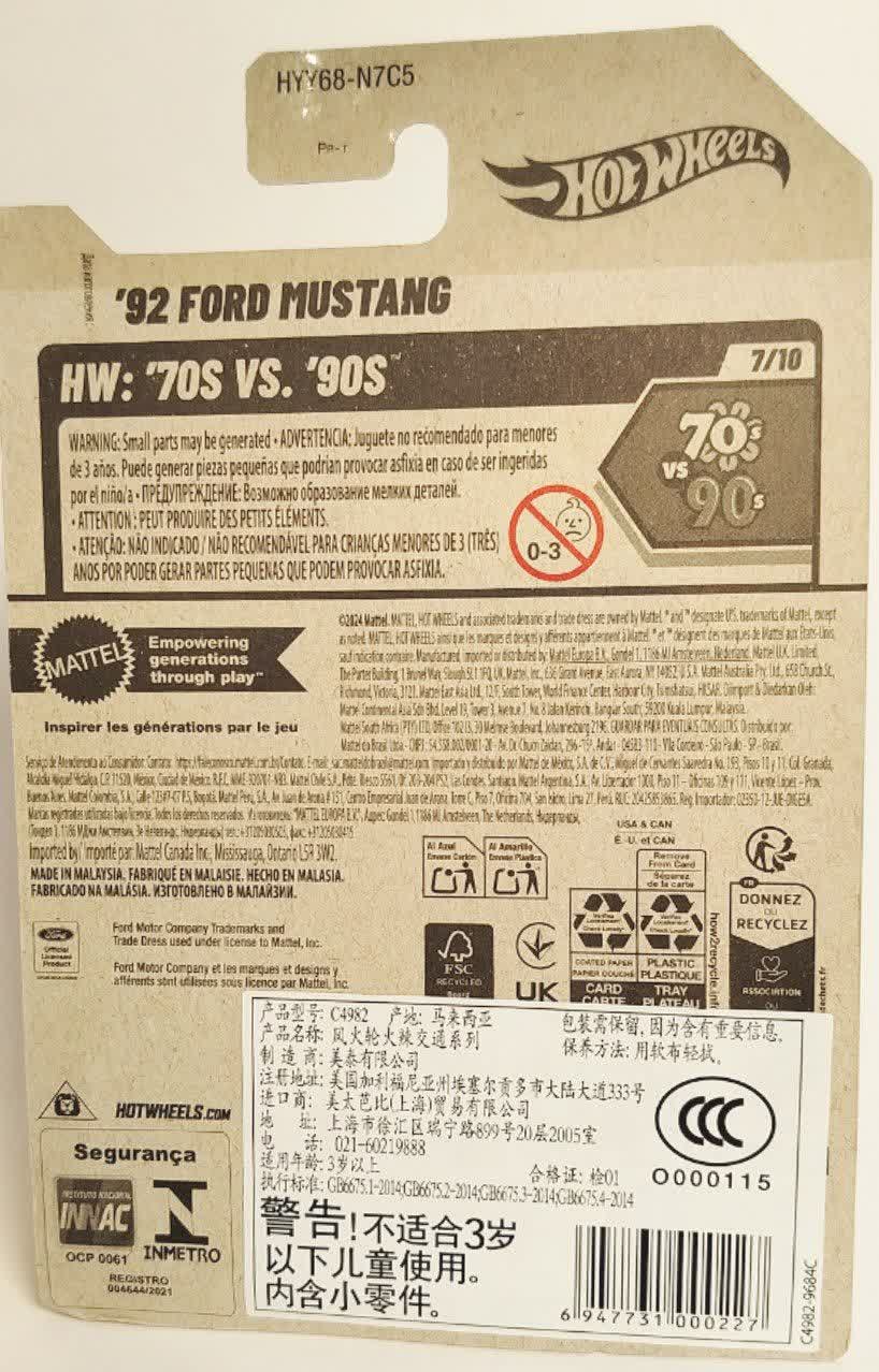 Hot Wheels 92 Ford Mustang HW 70s vs 90s 7/10 127/250