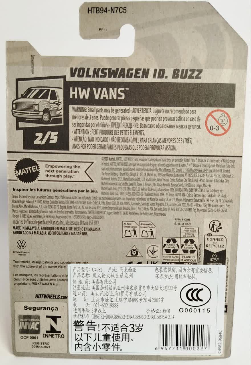 این مدل شماره ۲ از ۵ در سری HW Vans است. این سری مختص ونها، مینیونها و خودروهای تجاری است که طرفداران خاص خود را دارند. حضور ID. Buzz در این سری، نشاندهنده تغییر جهت دنیای حملونقل به سمت خودروهای پاک است. لوگوی HW VANS در گوشه سمت راست کارت، اصالت این دستهبندی را تایید میکند.