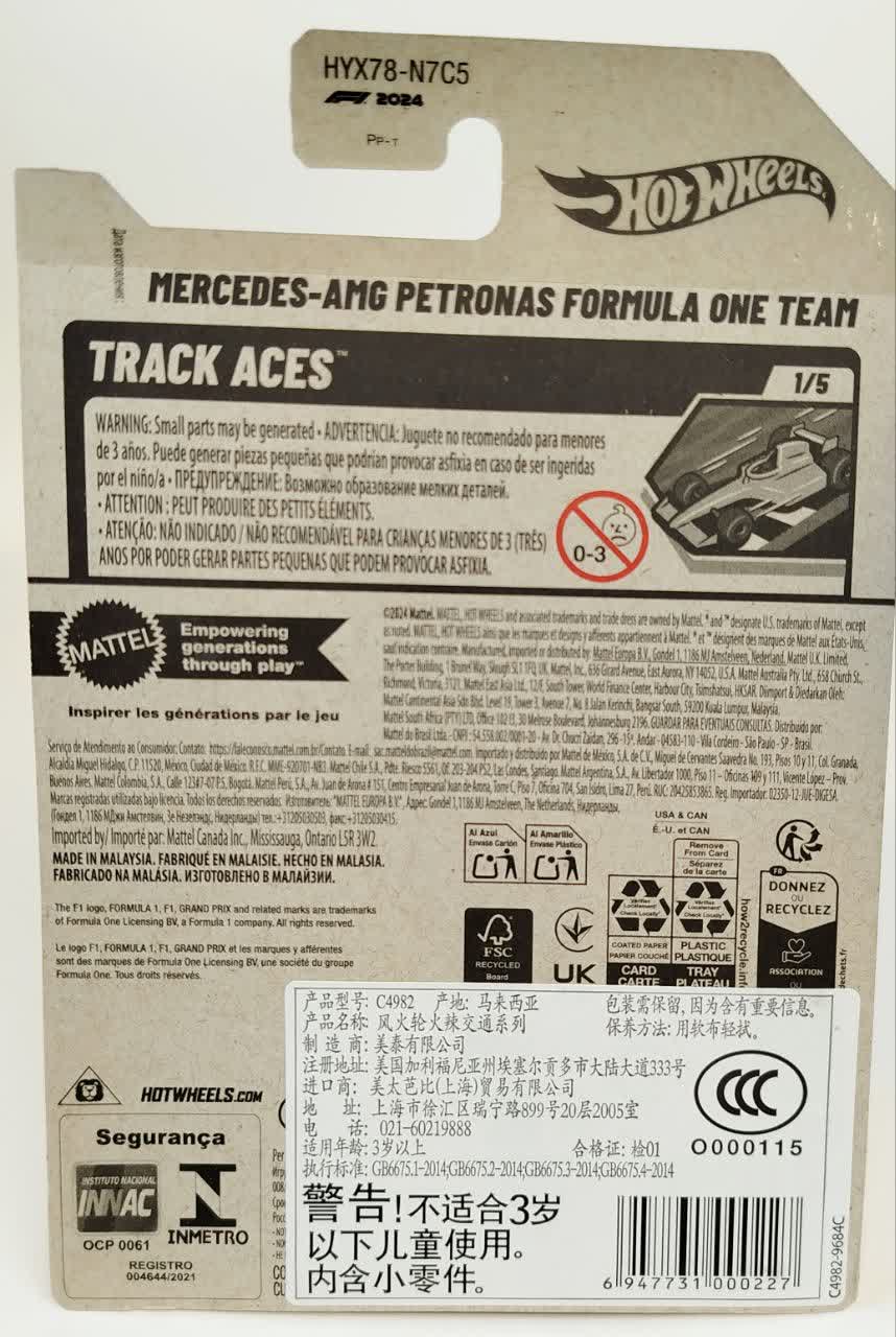 این مدل شماره ۱ از ۵ در سری HW Track Aces است. نام این سری (تکخالهای پیست) کاملاً برازنده خودرویی است که فقط برای پیست ساخته شده است. قرار گرفتن مرسدس F1 به عنوان سرلیست این سری، نشاندهنده برتری تکنولوژیک آن نسبت به سایر خودروهای مسابقهای است.