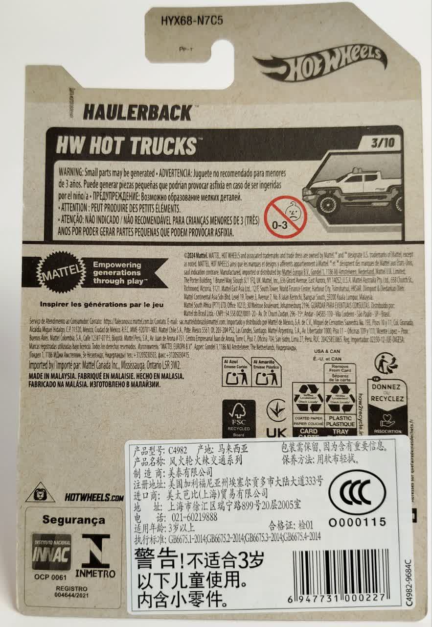این مدل شماره ۳ از ۱۰ در سری HW Hot Trucks است. این سری به وانتها و کامیونهای تیونینگ شده اختصاص دارد. هالربک با طراحی منحصر به فرد خود که شبیه به کامیونهای مسابقات اروپایی است، در کنار وانتهای کلاسیک آمریکایی، تنوع جالبی به این سری داده است. لوگوی "2025" با شعله آتش روی کارت، جدید بودن سری ساخت را نشان میدهد.