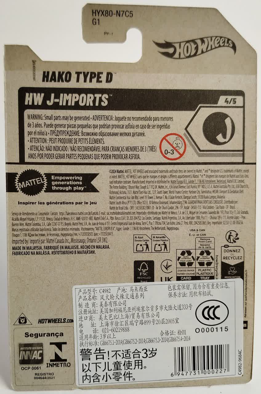 این مدل شماره ۴ از ۵ در سری HW J-Imports است. این سری یکی از محبوبترین خطوط تولید هات ویلز است که به خودروهای ژاپنی اختصاص دارد. حضور یک مدل "اورجینال هات ویلز" در کنار مدلهای واقعی در این سری، نشاندهنده قدرت طراحی Hako Type D است که توانسته جای خود را در دل طرفداران JDM باز کند.