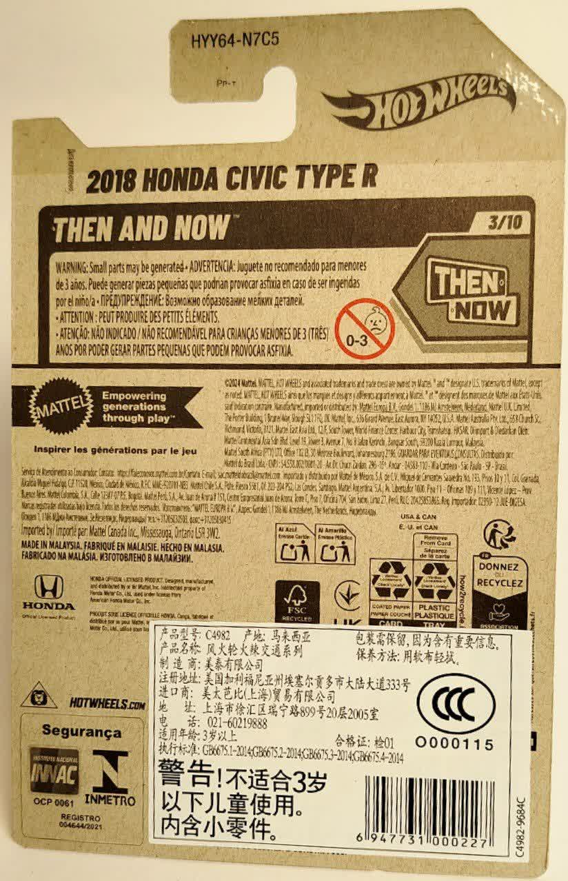 Hot Wheels 2018 Honda Civic Type R Then Now 3/10 123/250