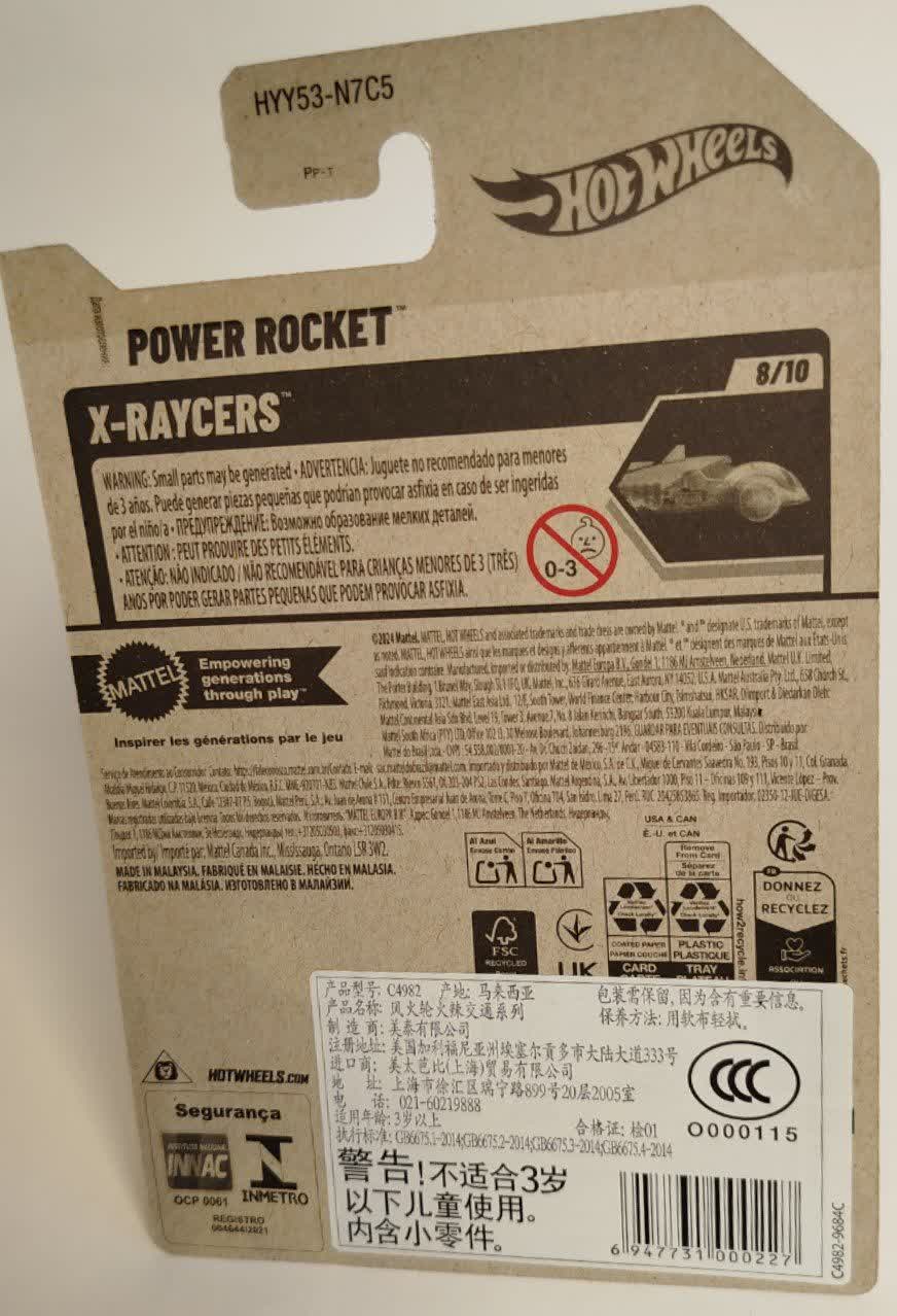 این مدل شماره ۸ از ۱۰ در سری X-Raycers است. ویژگی اصلی این سری، استفاده از بدنههای پلاستیکی شفاف و رنگی است که علاوه بر زیبایی بصری، باعث سبکی وزن ماشین میشود. وزن کمتر به معنای شتاب بیشتر در پیستهای جاذبهای و لوپهاست. پاور راکت به دلیل طراحی آیرودینامیک و وزن سبک، یکی از سریعترین ماشینها در پیستهای هات ویلز محسوب میشود.