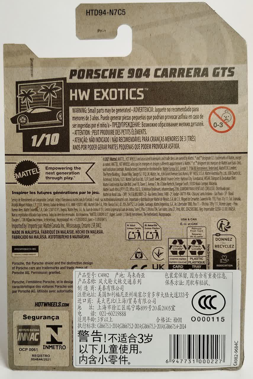 این مدل شماره ۱ از ۱۰ در سری HW Exotics است. این سری معمولاً شامل ترکیبی از سوپراسپرتهای مدرن و کلاسیکهای ارزشمند است. پورشه ۹۰۴ با قرار گرفتن در صدر این لیست، پرچمدار کلکسیون ماشینهای خاص سال ۲۰۲۵ محسوب میشود. لوگوی نخل در گوشه کارت، نماد این سری جذاب و تابستانی است.