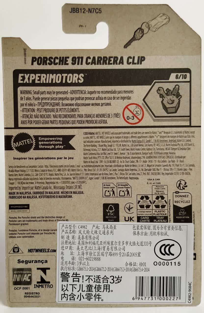 Hot Wheels Porsche 911 Carrera Clip Experimotors 6/10 187/250