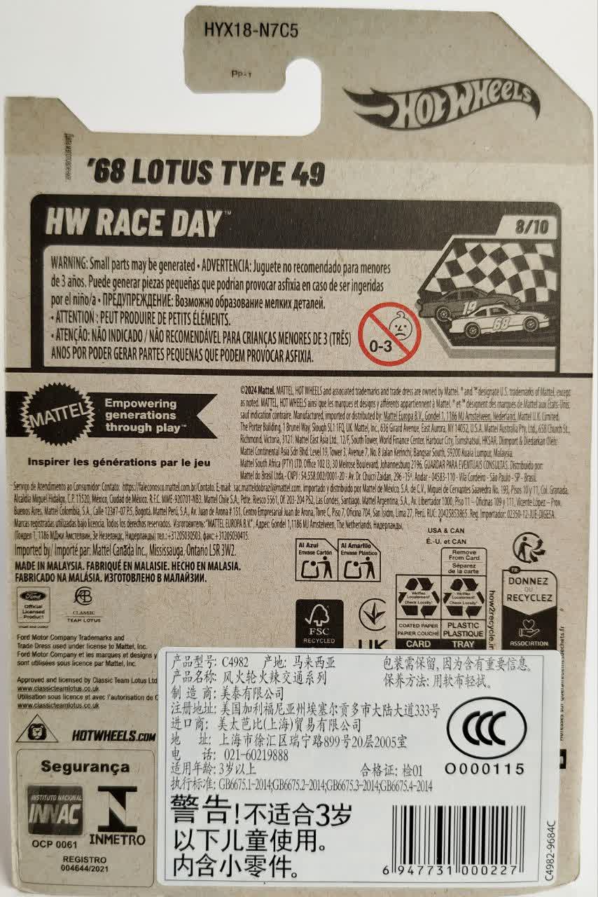 Hot Wheels 68 Lotus Type 49 HW Race Day 8/10 193/250