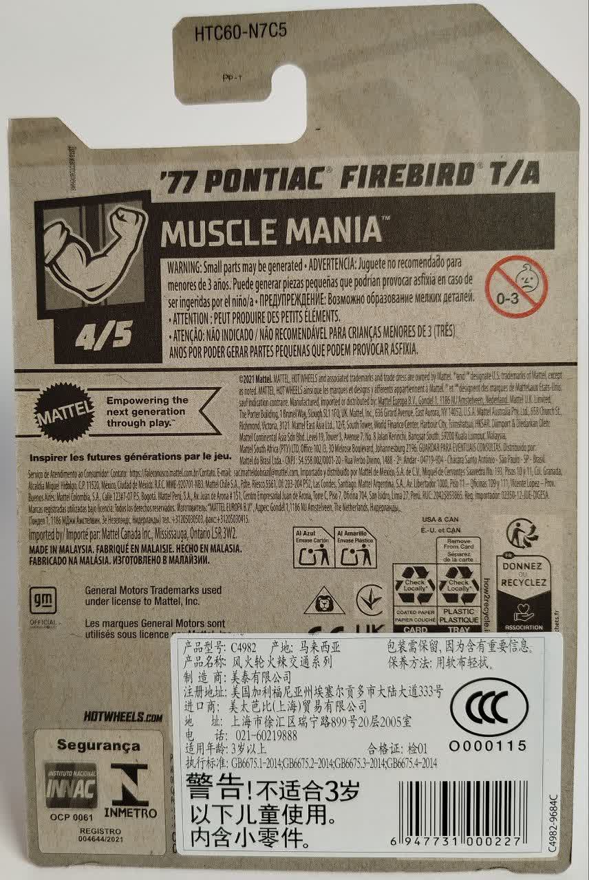این مدل شماره ۴ از ۵ در سری Muscle Mania است. این سری به بهترین و قویترین خودروهای عضلانی آمریکایی اختصاص دارد. پونتیاک فایربرد با آن جلوپنجره دوتایی خاص و چراغهای مستطیلی، یکی از ستونهای اصلی این سری محسوب میشود. لوگوی بازوی عضلانی در گوشه کارت، نماد قدرت این مجموعه است.