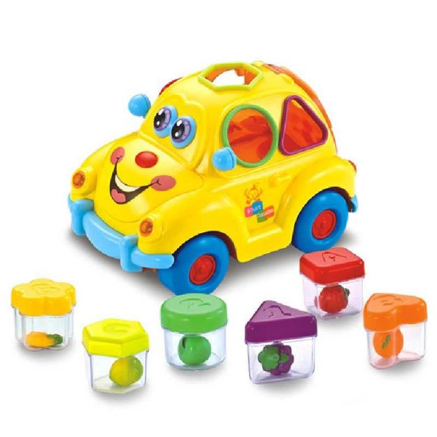 ماشین لگویی هالی تویز موزیکال است و هنگام حرکت موزیک پخش می کند. دارای افکت های نوری و صوتی است و چراغ های این اسباب بازی چشمک زن می باشد. دارای ۶ شکل هندسی رنگی است که داخل هرکدام یک نوع میوه قرار گرفته است. روی بدنه ماشین ۶ عدد از اشکال هندسی طراحی شده که کودک با انتخاب اشکال درست آنها را درون ماشین می اندازد. درب صندوق عقب ماشین قابلیت باز شدن دارد و می توان اشکال هندسی را از آنجا برداشت. جلوی ماشین یک طناب و دسته ای قرار گرفته تا کودک بتواند ماشین را با آن بکشد.