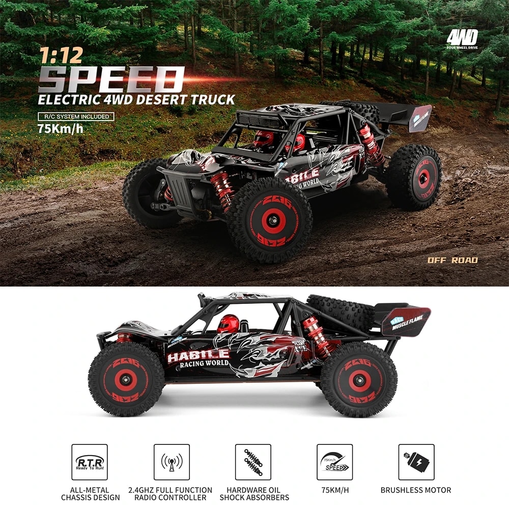 ماشین کنترلی اسپید ریس موتور براشلس XKS Speed Race 124016 یکی از قدرتمندترین محصولات در رده باگیهای کویری (Desert Buggy) است که با مقیاس 1:12 طراحی شده است. این ماشین آرسی هیجانانگیز با بهرهگیری از سیستم دو دیفرانسیل (4WD) و موتور قدرتمند براش کلاس ۵۵۰، توانایی دستیابی به سرعتهای بسیار بالا را دارد. بدنه این مدل با طرح گرافیکی Habile Racing World و رنگبندی قرمز و مشکی، ظاهری بسیار جسورانه و مسابقهای به آن بخشیده است. استفاده از شاسی آلیاژی مستحکم و کمکفنرهای روغنی مستقل، این مدل را برای پرشهای بلند و حرکت در مسیرهای ناهموار آفرودی کاملاً آماده کرده است. ریموت کنترل حرفهای ۲.۴ گیگاهرتزی همراه محصول، کنترل دقیق و بدون تداخل را تا برد بیش از ۱۰۰ متر برای کاربر فراهم میکند.