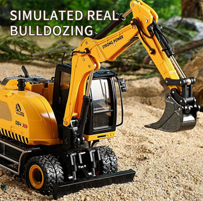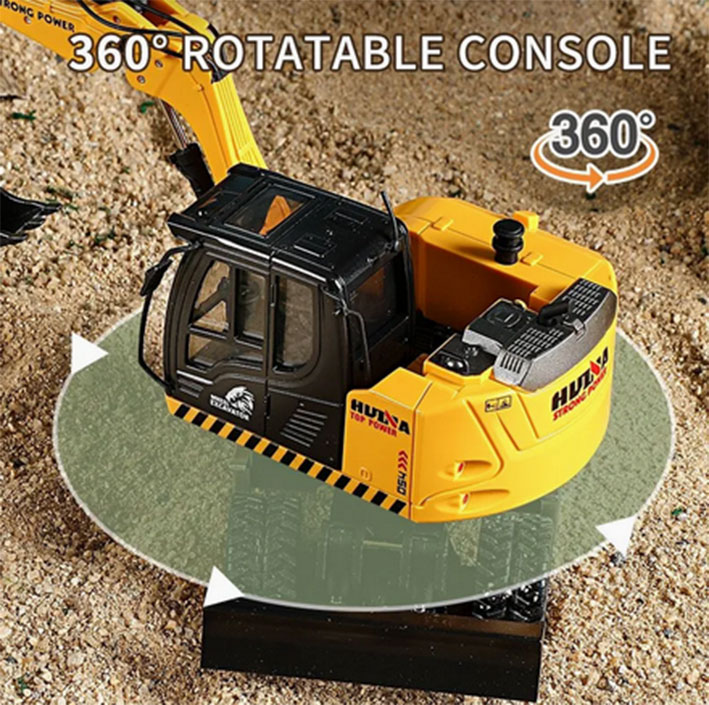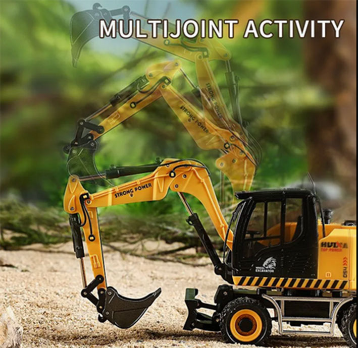 یکی از ویژگیهای جذاب Huina 1725، حرکت طبیعی بازوی حفاری (Boom, Stick, Bucket) است. شما میتوانید این بخشها را مانند نسخه واقعی تنظیم کرده و حتی مدل را در حالتهای حفاری، حمل بار و زمینبرداری نمایش دهید.