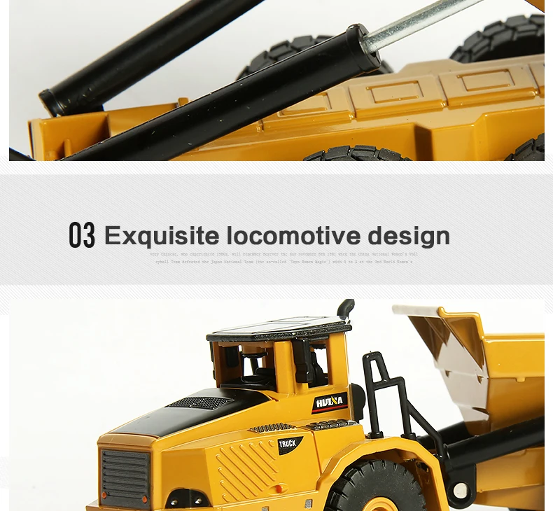 - مدل مهندسی کامیون راهسازی با ظاهر بارگیر و ریزهکاری مناسب، برای کلکسیونرها و علاقهمندان.